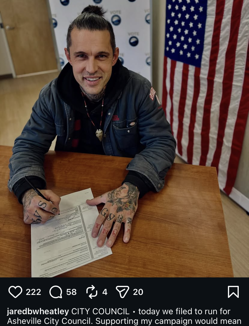 Wheatley, in a photo posted on his Instagram, noting ‘today we filed to run for Asheville city council.’ Moritz filed the same day